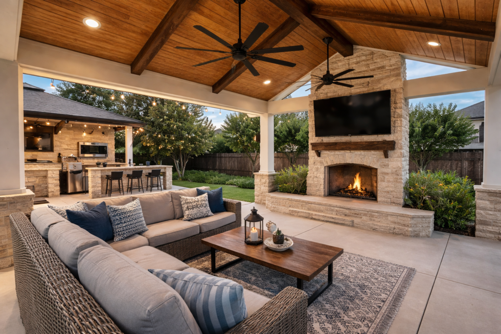 Our Gallery Explore our portfolio of beautifully crafted outdoor living spaces designed for Texas homeowners. PATIO COVERS STONE FIREPLACES OUTDOOR KITCHENS PERGOLAS CONCRETE DECKS PATIO COVERS STONE FIREPLACES OUTDOOR KITCHENS PERGOLAS CONCRETE DECKS GALLERY Patio Covers Seamlessly integrated structures providing shade and style, designed to match your home’s architecture. Premier Outdoor Living Where Precision Meets Craftsmanship GET YOUR FREE ESTIMATE CALL US NOW GALLERY Stone Fireplaces Gourmet setups with custom stone islands and premium appliances for the ultimate outdoor cooking experience. Premier Outdoor Living Where Precision Meets Craftsmanship GET YOUR FREE ESTIMATE CALL US NOW GALLERY Outdoor Kitchens Gourmet setups with custom stone islands and premium appliances for the ultimate outdoor cooking experience. Premier Outdoor Living Where Precision Meets Craftsmanship GET YOUR FREE ESTIMATE CALL US NOW GALLERY Luxury Pergolas Elegant shade structures that enhance your outdoor living space with style and sophistication. Premier Outdoor Living Where Precision Meets Craftsmanship GET YOUR FREE ESTIMATE CALL US NOW GALLERY Concrete Overlays Durable, decorative surfaces that transform any outdoor area into a beautiful livingspace. Premier Outdoor Living Where Precision Meets Craftsmanship GET YOUR FREE ESTIMATE CALL US NOW GALLERY Custom Decks Beautifully crafted decks designed to enhance your outdoor living space with comfort, durability, andtimeless style. Premier Outdoor Living Where Precision Meets Craftsmanship GET YOUR FREE ESTIMATE CALL US NOW Get Started Ready to elevate your outdoor experience? Schedule your free consultation and get a personalized outdoor design built for how you live, relax, and entertain. Let’s create a space you’ll love every single day. Contact FormNameEmailPhoneYour Project Budget- Select -$2,000 - $10,000$10,000 - $20,000$20,000 - $30,000$30,000 - $40,000$40,000+Your Project Details Submit Form